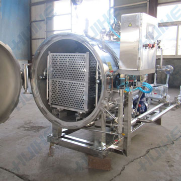 殺菌鍋鍋蓋鎖緊型式是采用自鎖楔塊嚙合方法,開閉起動方便。該殺菌設備適用于罐頭類產品、飲料、牛奶、鹵制品等產品馬口鐵罐、玻璃瓶或耐蒸煮沸軟包裝物的實罐產品進行高溫殺菌處理,以達到保質期內“商品無菌”的要求。在使用過程中有幾點需要注意的地方。